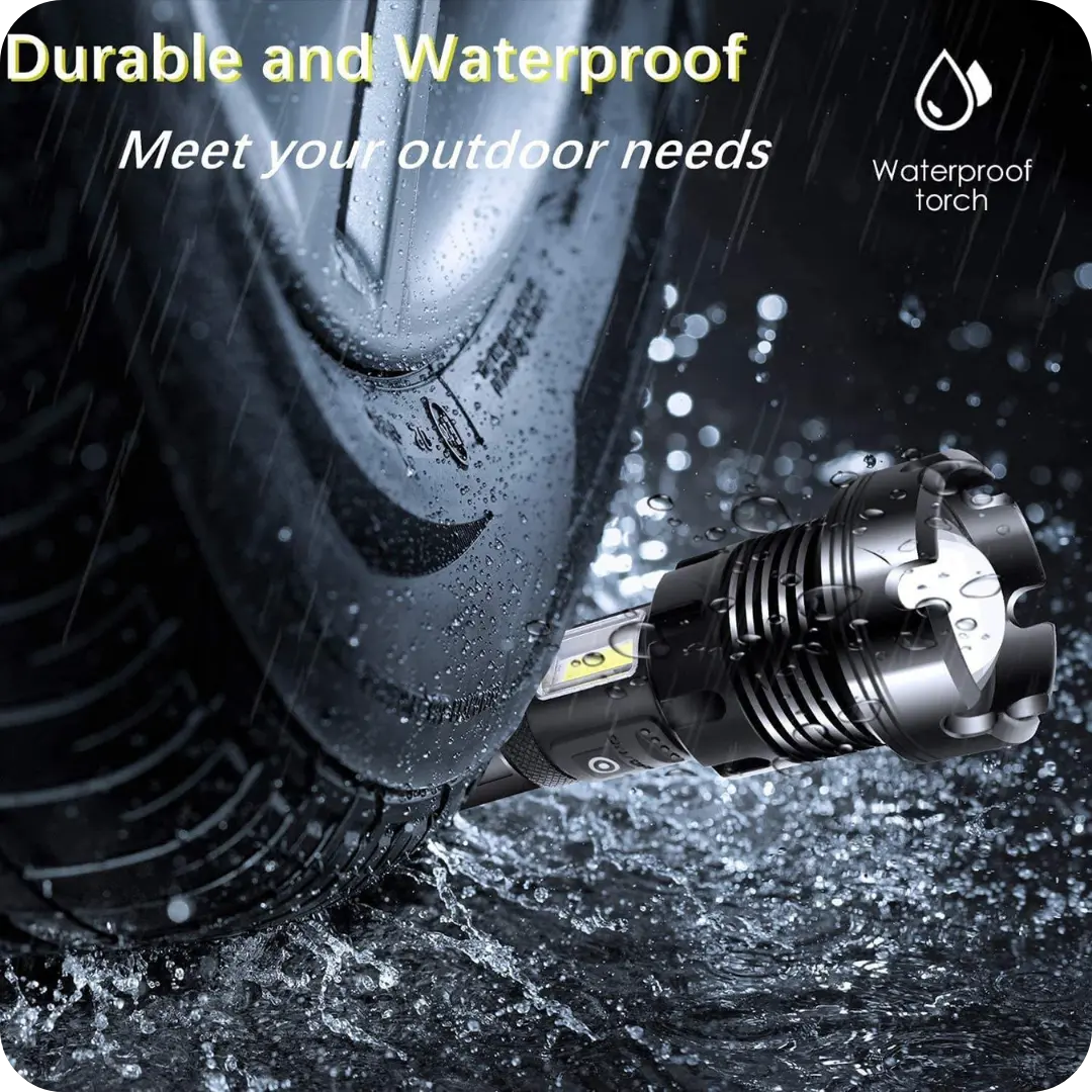 Water Resistant USB Rechargeable LED Flashlight delivers strong lighting with seven modes, perfect for reliable use at night. Its durable construction and telescopic zoom allow for adjustable focus, providing the right amount of light for any situation. USB rechargeable, this flashlight is convenient and eco-friendly, making it an essential tool for nighttime activities.