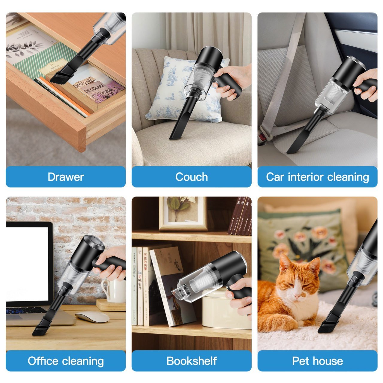 Kisafishaji cha utupu kimeundwa ili kuondoa vumbi, nywele na uchafu kwa urahisi kutoka kwa dawati lako na hata zulia, sofa, kompyuta na kibodi.